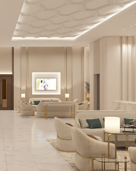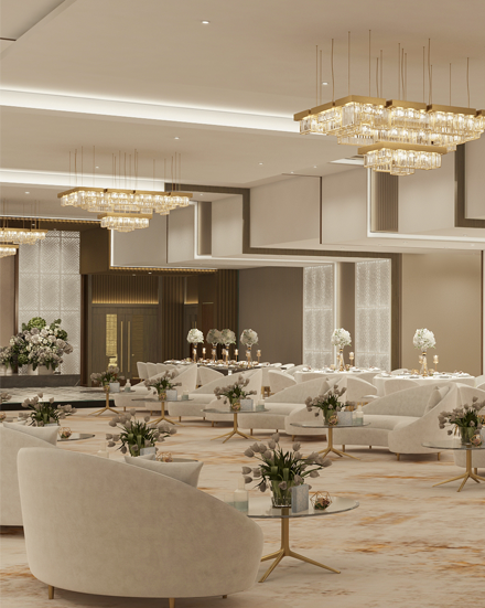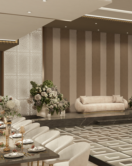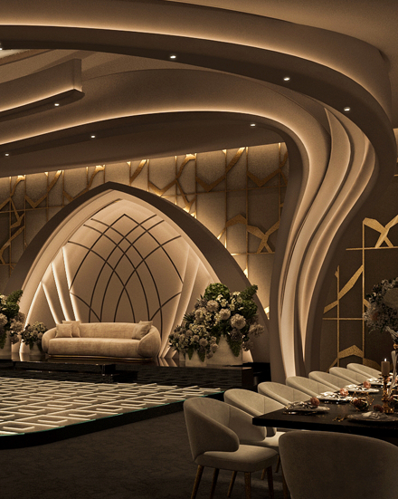 Our halls excel in crafting a royal experience that is reflected in every detail. Our vision is to be leaders in the world of luxury events, through enchanting architectural spaces, advanced technology, and service that embodies the art of refined hospitality. We aspire to be the first choice for those seeking an unforgettable celebration — one that exceeds expectations and touches the boundaries of dreams.